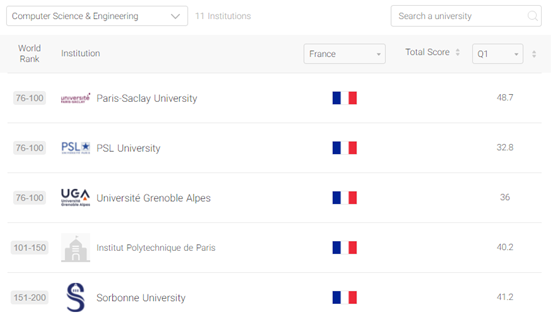 Université Paris-Saclay 1ère en France en Computer Science and Engineering