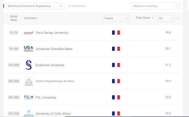 Université Paris-Saclay 1ère en France en Electrical Engineering